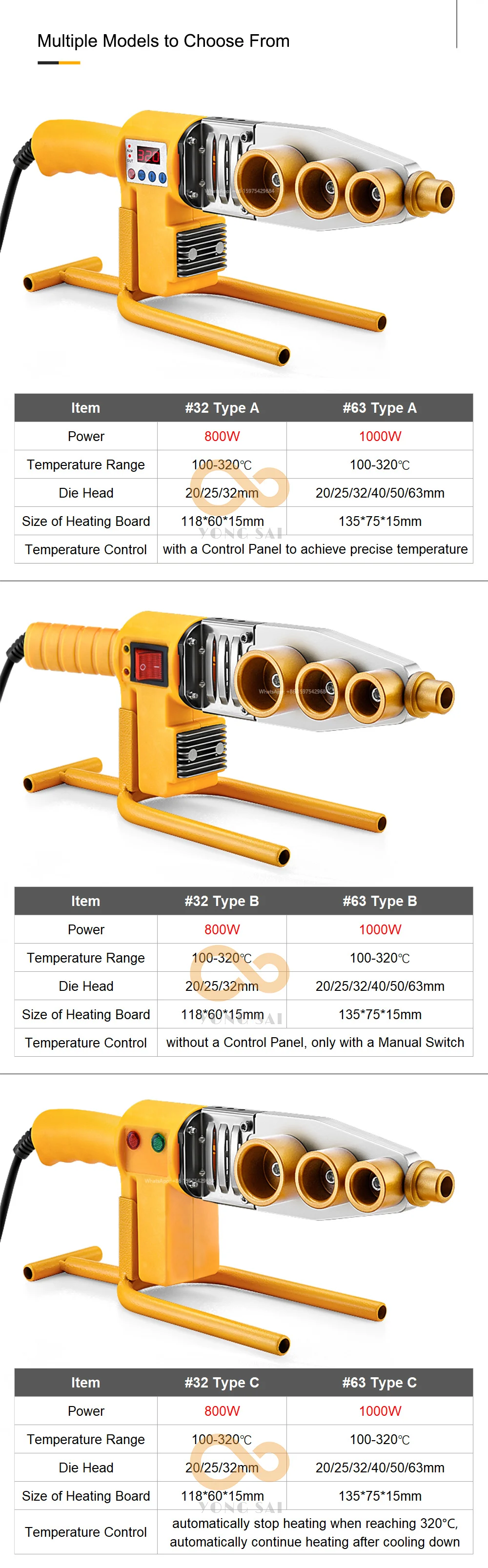 - Diameter of Die Head: 20/25/32/40/50/63mm