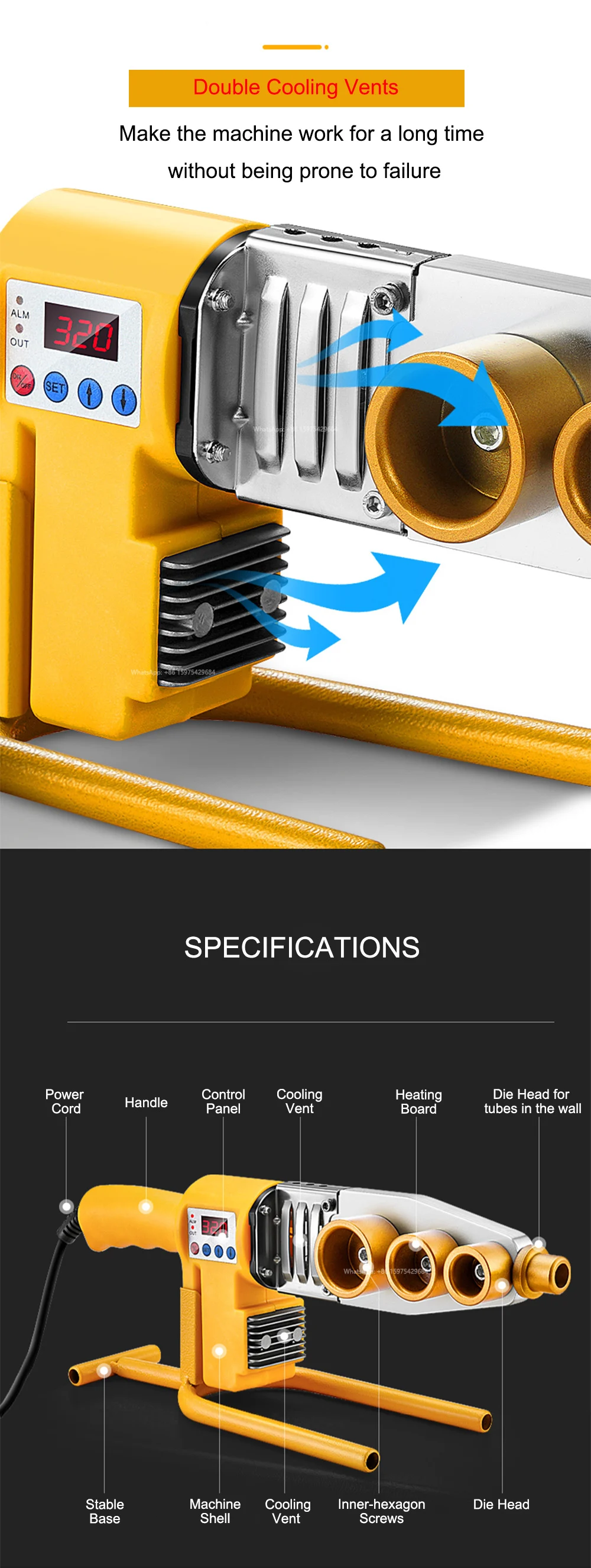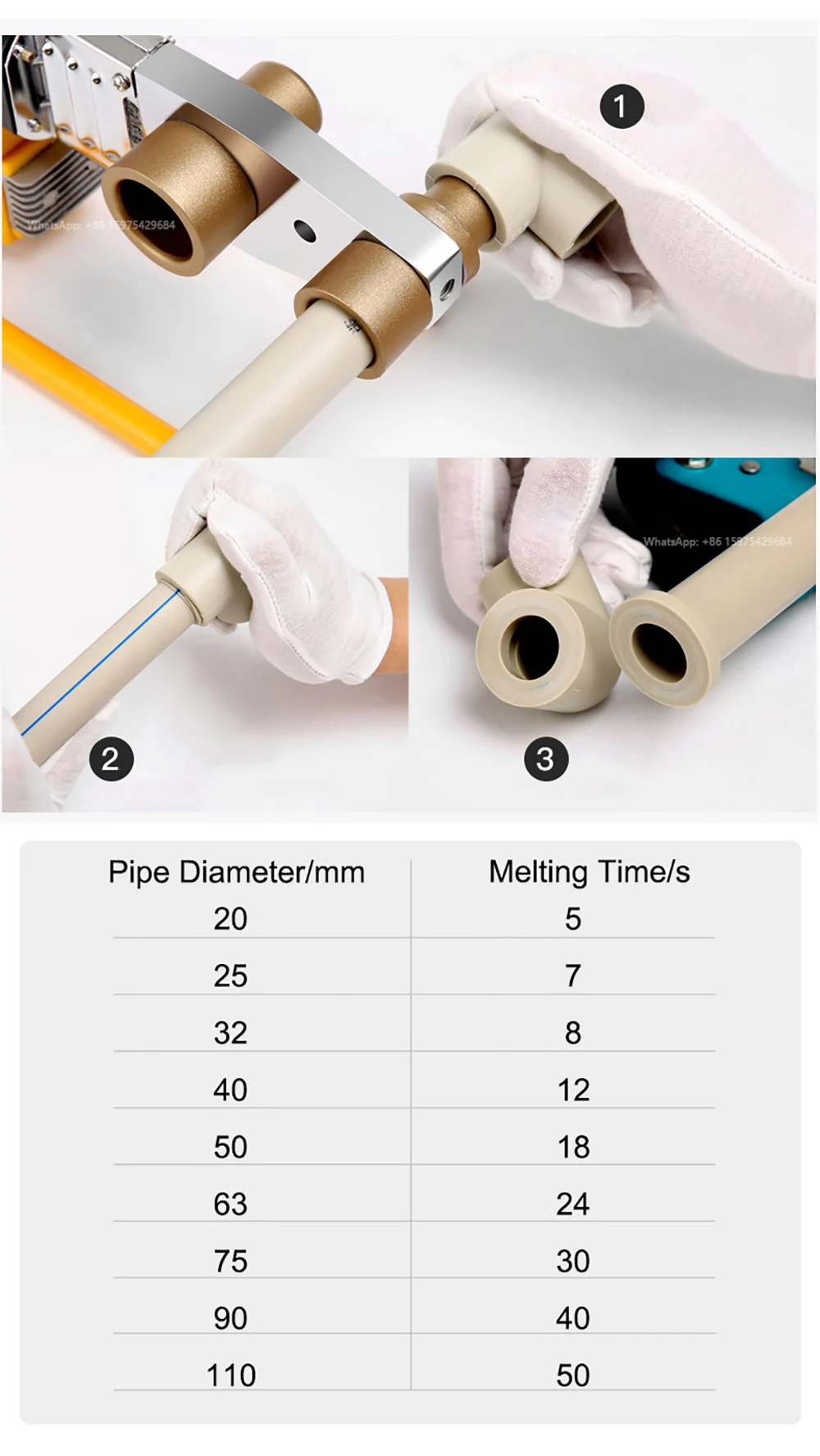 – For welding plastic pipes such as PP / PPR / PB / PE / PP-C pipe and etc.